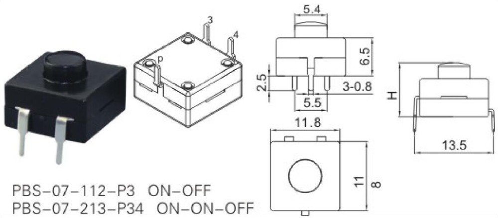 The PBS-07-112-P3 Push Button Switch is a 2-pin DIP switch designed for easy and swift operation on your PCB. This compact 12x12x9mm switch is highly convenient to use. Enhanced with attractive illuminative materials on its surface, the push button switch offers a graphic appeal that adds to its visual charm. The labeling ensures ease of use, making it a user-friendly choice for various applications. With the PBS-07-112-P3 Push Button Switch, you can enjoy a satisfying and efficient user experience. Whether youre designing electronic devices or implementing DIY projects, this switch will prove to be an indispensable component in your toolkit. Simplify your switching needs with this reliable and appealing push button switch.