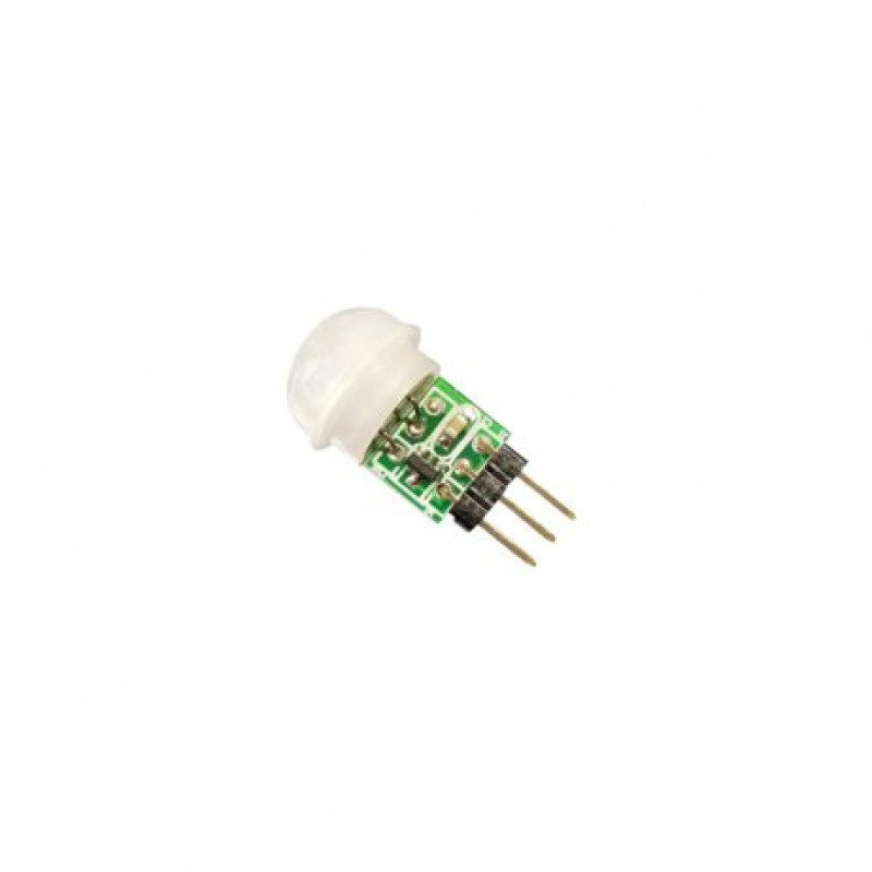 A digital PIR sensor combined with a Fresnel lens is mounted on a compact-size PCB and