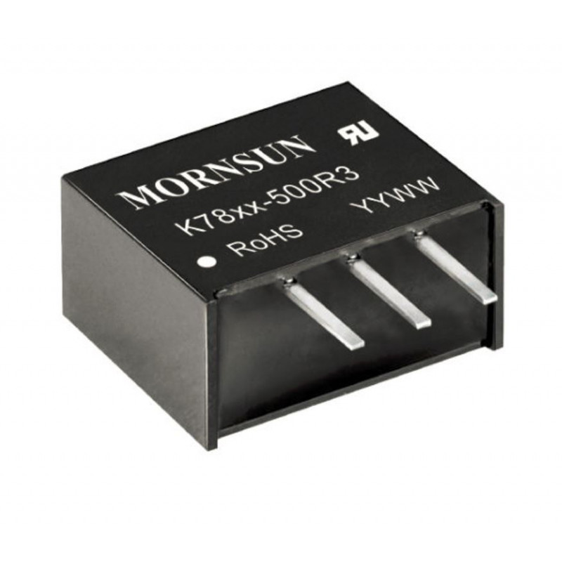 K7812-500R3 series are high efficiency switching regulators and ideal substitutes for LM7812 series three-terminal linear regulators. The converters feature high efficiency, low loss, short circuit protection, positive or negative output voltage, and there is no need for a heat sink. These products are widely used in applications such as industrial control, instrumentation and electric power.