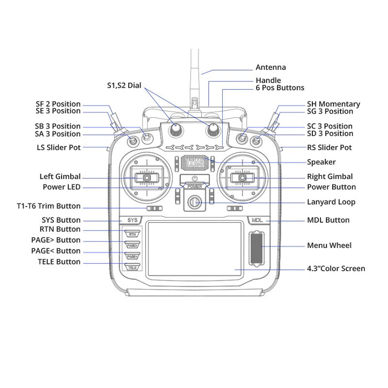 The controller features a high-resolution color touchscreen display, multiple switch options, customizable controls, and multi-protocol support. With OpenTX firmware support and ergonomic design, it provides comfortable and precise control for a wide range of RC applications, including drones, airplanes, helicopters, cars, and boats.
