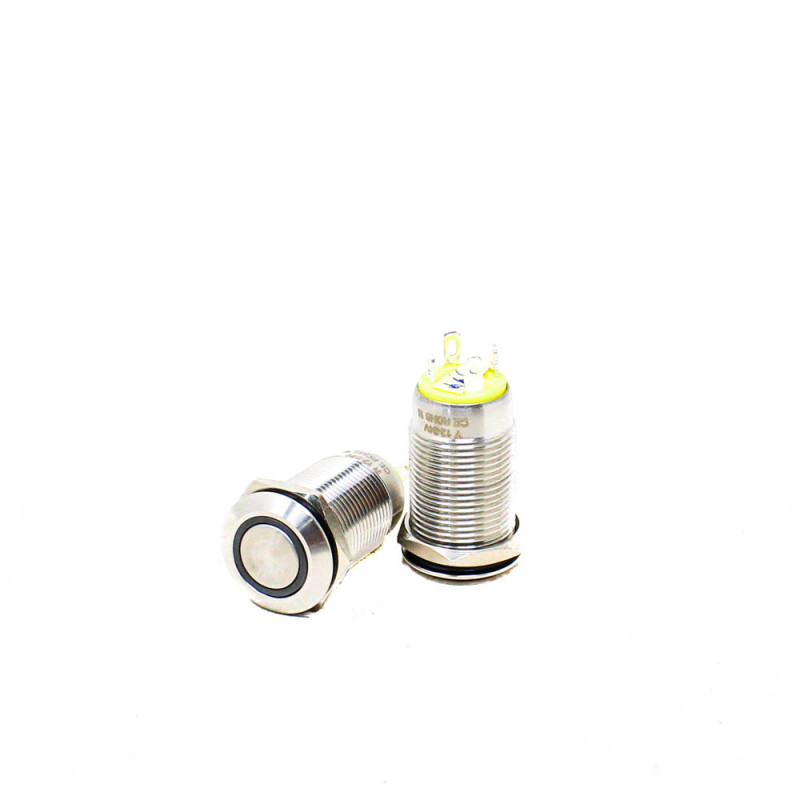 This Momentary Metal Pushbutton Switch is a perfect choice if you are in need of a heavy-duty push-button! These metal push buttons are a very tough, small, panel-mount switch with an illuminated Red LED ring. It is an SPDT with 12mm threading and 1mm pitch. It gives premium look to your dashboard or control panel with a Led Light ring around the push area of the switch. These switches are available in various LED light Colors, you can choose for your application purpose