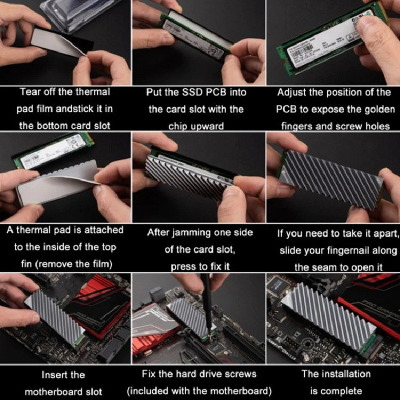 The radiator is designed to attach to the M.2 SSD, providing a larger surface area for heat dissipation. Some radiators might have fins or other structures to increase their cooling efficiency.