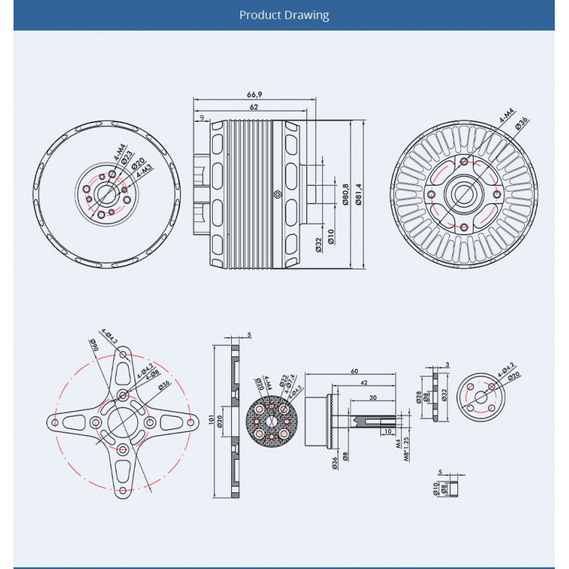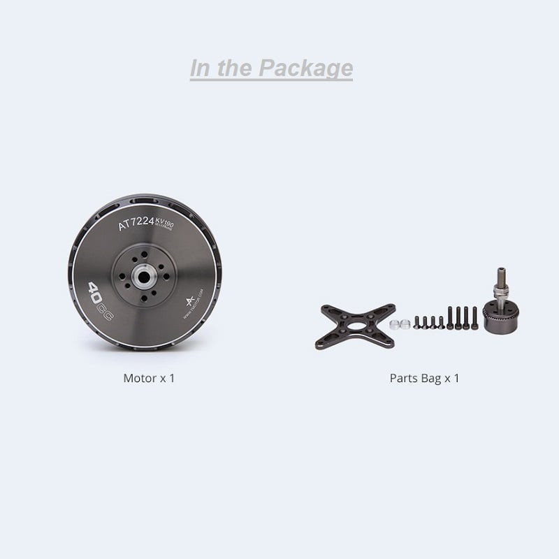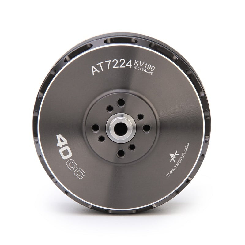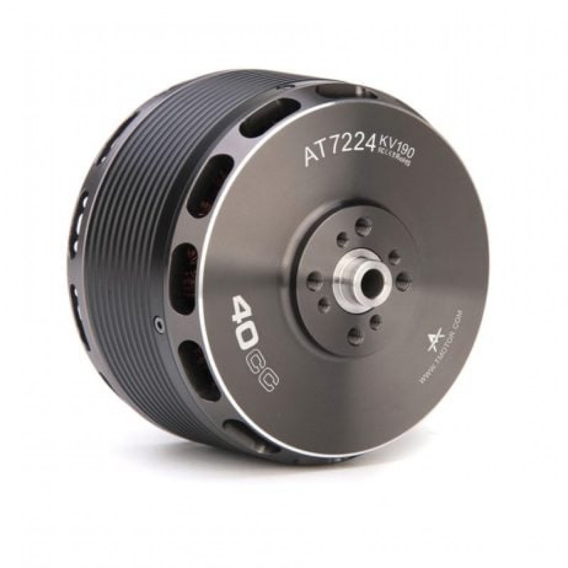 This is T motor AT7224 KV190. This Hi-end motor is suitable for larger airplanes of the Outdoor category. T-MOTOR powerful AT7224 enables to mounting on the fixed-wing and multi-copter. The 6000w maximum power with 17.72kg thrust. It supports 10-12S is capable to reach currents up to 135A shortly.