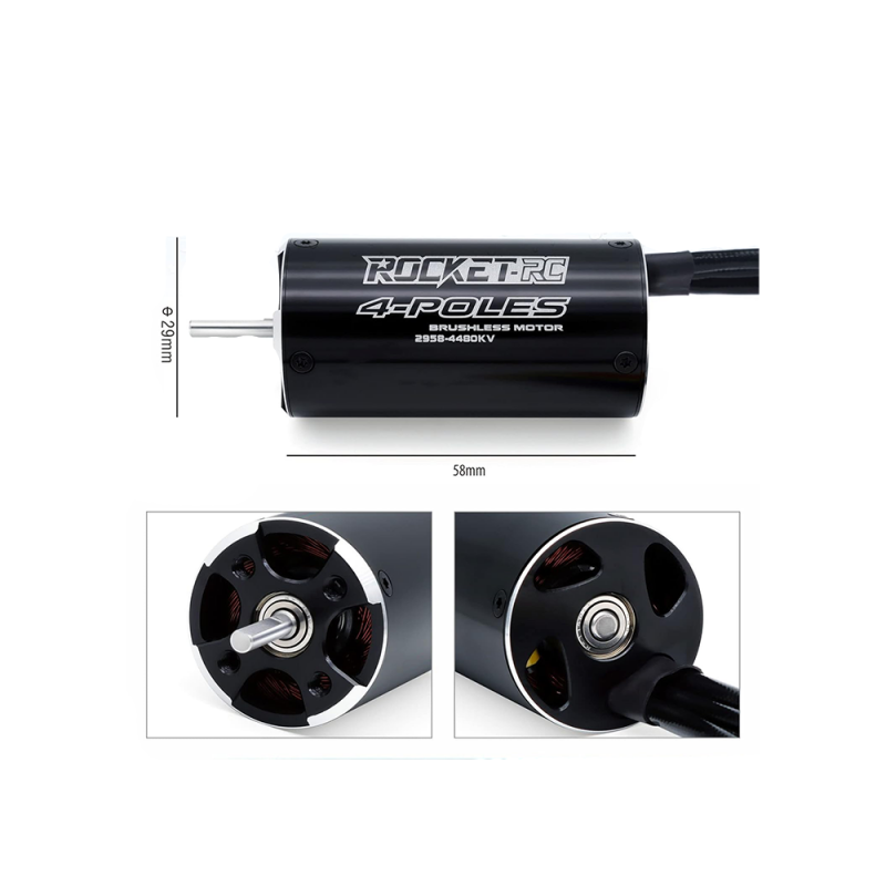 Rocket 2958 brushless rc boat motor 4POLE 3.175mm Black (4480 KV)