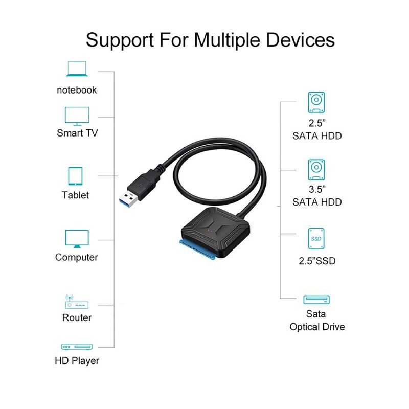 Use your computer Hard Drive as a USB portable Hard DISK without any extra effort now. Just plug this cable into your Hard Drive with SATA 3.0 connector and use it as a USB hard drive with a USB 3.0 connector that comes at another end.