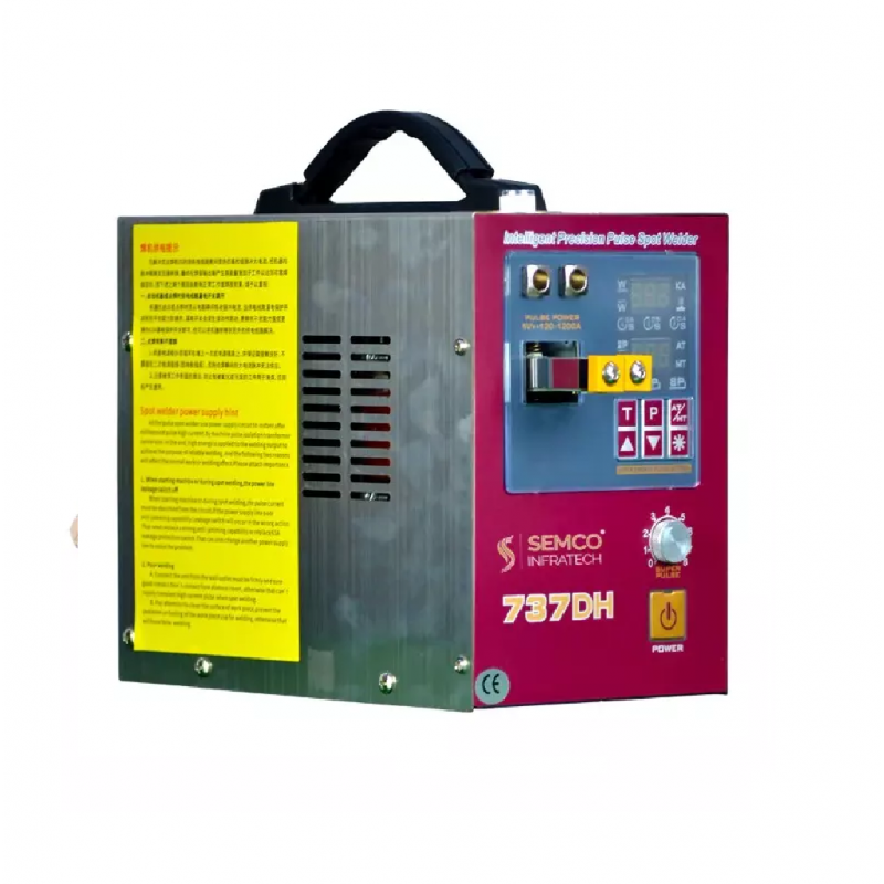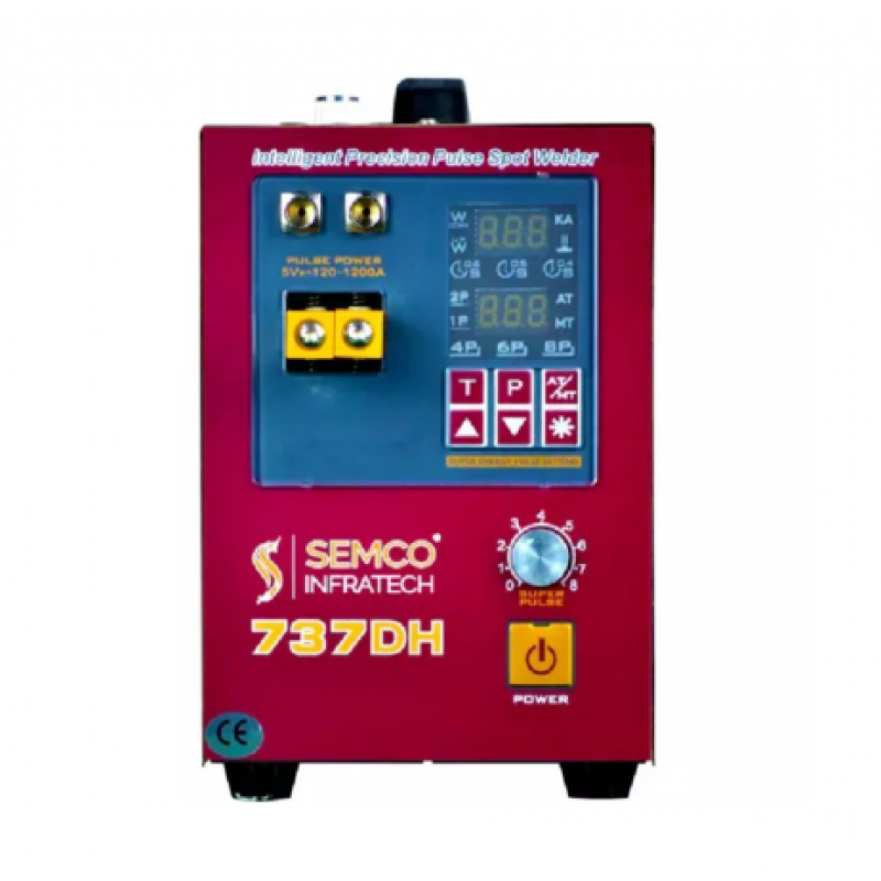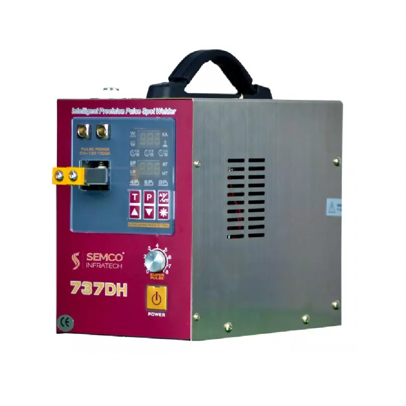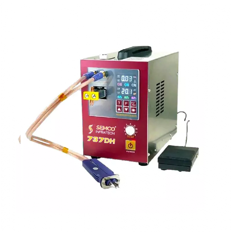 Semco SI 737DH series is an intelligent time-delay battery spot welder, which is used at high power battery spot welding. The 737 DH built in LED light which is helping you to work during low brightness environment. It comes with both AT Mode and MT Mode. The AT mode can be operated by single-handed operation while the MT mode can be operated by double-handed operation. The standard configuration of 737DH series include strobe trigger, front handle and back handle.