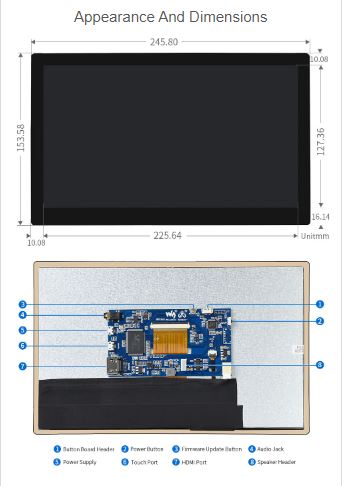 Waveshare 10.1inch QLED Quantum Dot Display, Capacitive Touch 1280720 G+G Toughened Glass Panel Various Systems Support