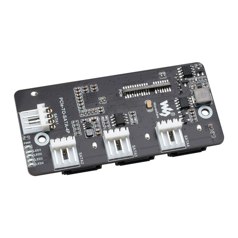 PCIe TO 4-Ch SATA 3.0 Expander, 6Gpbs High-Speed SATA Interface, Supports CM4 .Onboard SATA host controller (AHCI) with upstream PCle Gen3 x1 and downstream four SATA Gen3 ports. Its a low latency, low cost and low power AHCI controller. With four SATA ports and cascaded port multipliers, it can enable users to build up various high-speed IO systems, including server, high-capacity system storage or surveillance platforms