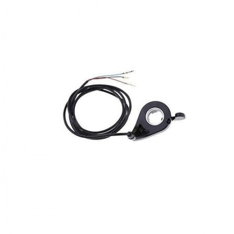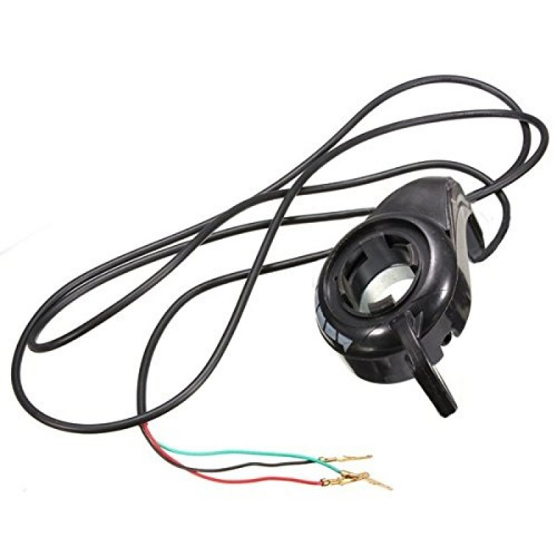 Left-hand thumb throttle or right-hand trigger throttle for adjusting the speed. This is a super nice accessory for an e-bike or scooter, it is easily wired to any scooter or e-bike. If you are not hard wiring this in and you would like certain ends put on the wires in a certain spot to make the installation easier, This is an electric bicycle, E-Bike, and scooters thumb speed adjuster.