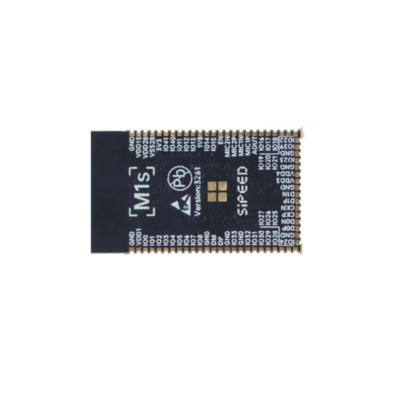 Sipeed M1s Module is an AIOT module based on BL808 of Bouffalo Lab, it contains 3 cores inside, with WiFi/BT/BLE wireless units, including multiple cpus, audio encoder and decoder, video encoder and decoder, and AI hardware accelerator (BLAI-100), suitable for a variety of high performance and low power applications.