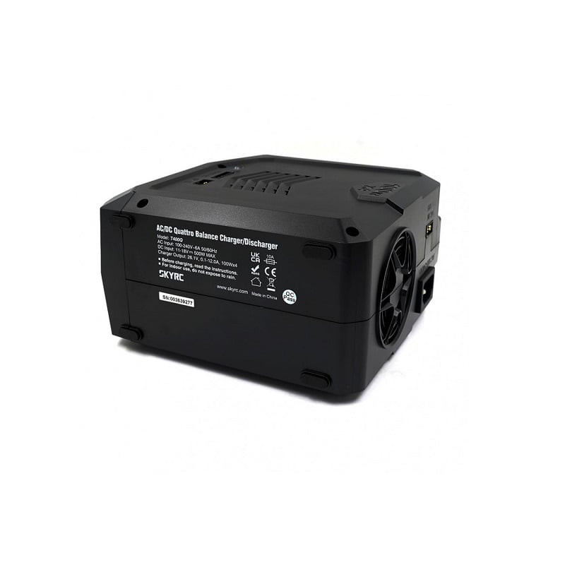 SkyRC T400Q is a multi-chemistry Quattro balance charger/discharger with four independent circuits that can work simultaneously. Its charging algorithm suits the most common battery chemistries in the market, such as LiPo, LiIon, LiHV, LiFe, NiMH, NiCd, and Pb (lead-acid).The built-in XT60 connectors on this juice box, is not only anti-reversal but also more reliable.