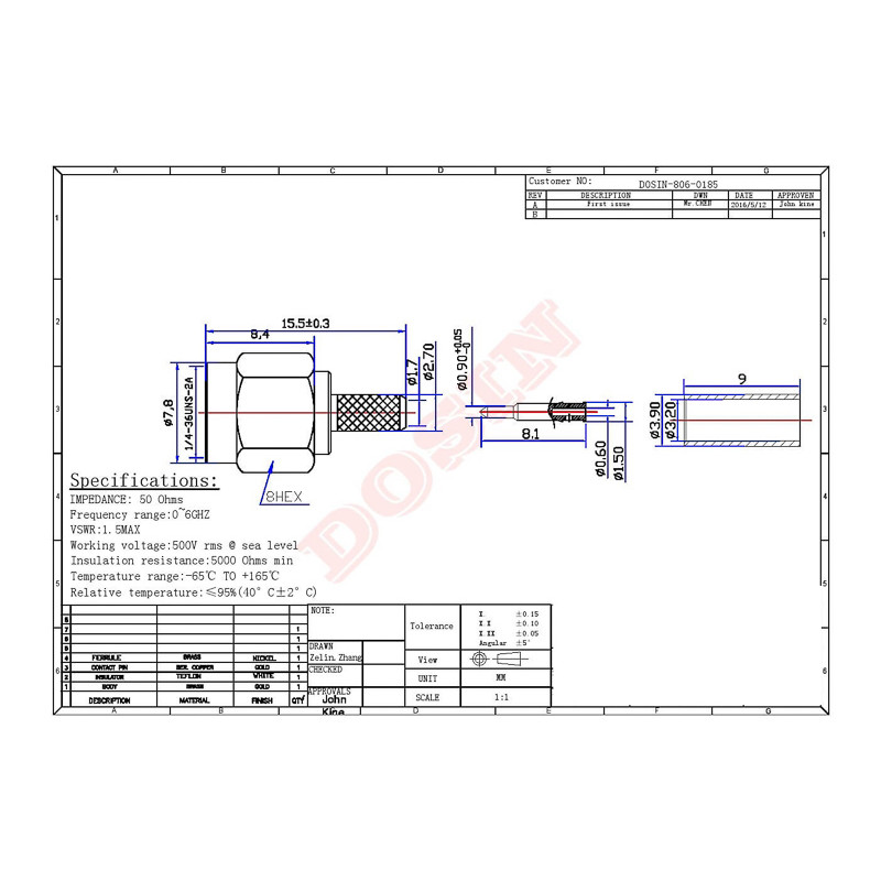 - SMA Female Connector,Male/Plug,Straight/180,Crimp Type,Coxial Cable;