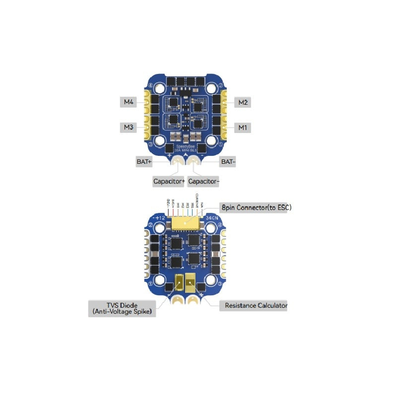 The SpeedyBee 35A BLHeli_S Mini 4-in-1 ESC is a high-performance electronic speed controller designed for drones. With its compact size and powerful capabilities ,this ESC is perfect for mini and micro quadcopters.