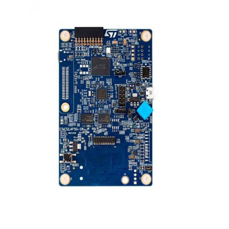The STM32L4P5G-DK Discovery kit is a complete demonstration and development platform for the STMicroelectronics Arm Cortex-M4 core-based STM32L4P5AGI6P microcontroller with four I2C buses, three SPI and six USART ports, CAN port, two SAI ports, 12-bit ADC, 12-bit DAC, internal 320-Kbyte SRAM and 1-Mbyte flash memory, two OctoSPI memory interfaces, touch-sensing capability, USB OTG FS port, TFT LCD controller, flexible memory controller (FMC), 8- to 14-bit DCMI interface, and JTAG debugging support.