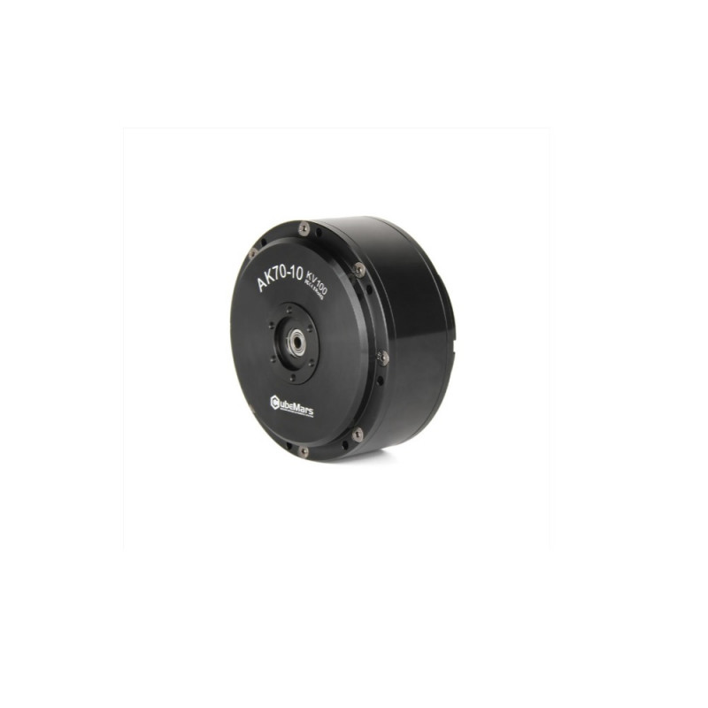 TheT-Motor Brushless Motor AK70-10 is a highly integrated and high-torque module. The module weighs only 521 g, thin as 50.2 mm combined with efficiency and dynamic. This motor combines with a planetary gear solution and uses a 10:1 reduction ratio.