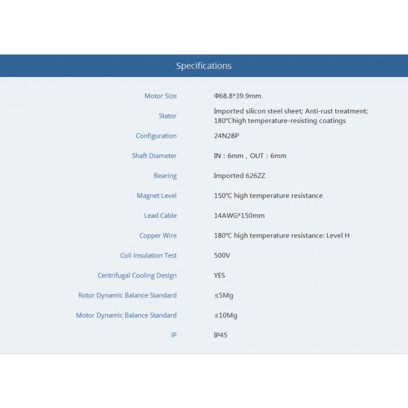 T Motors MN605-S KV320 + Alpha 60A LV (Motor+ESC Combo)Excelling in hot environments, the MN605S motor features a centrifugal fan design and divergent fin base, offering 15% better heat dissipation than standard models. Its semi-closed design and IP45 protection ensure reliability in various conditions, while anti-rust treatments grant longevity. A secure locking method and optimized performance, with high-temperature resistant components, ensure safe, efficient flying. With precise airflow analysis and superior materials, it promises durability and high performance in every gram.