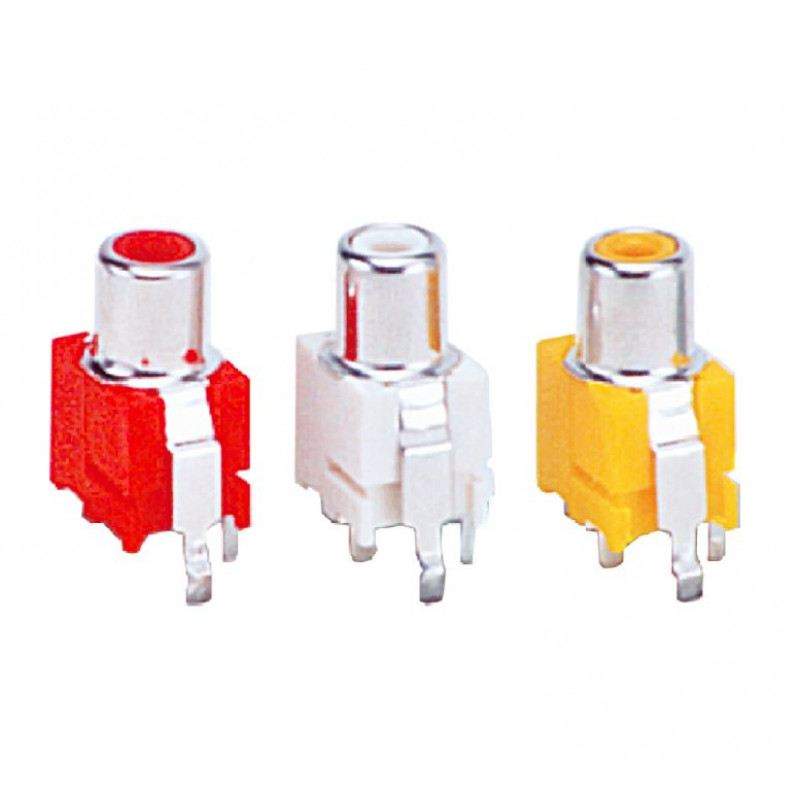 • MX PCB mounting type RCA socket connector Such as RCA audio cables have two connectors: red for right stereo and white for left stereo. An additional third connector on an RCA cable will be yellow for composite video.