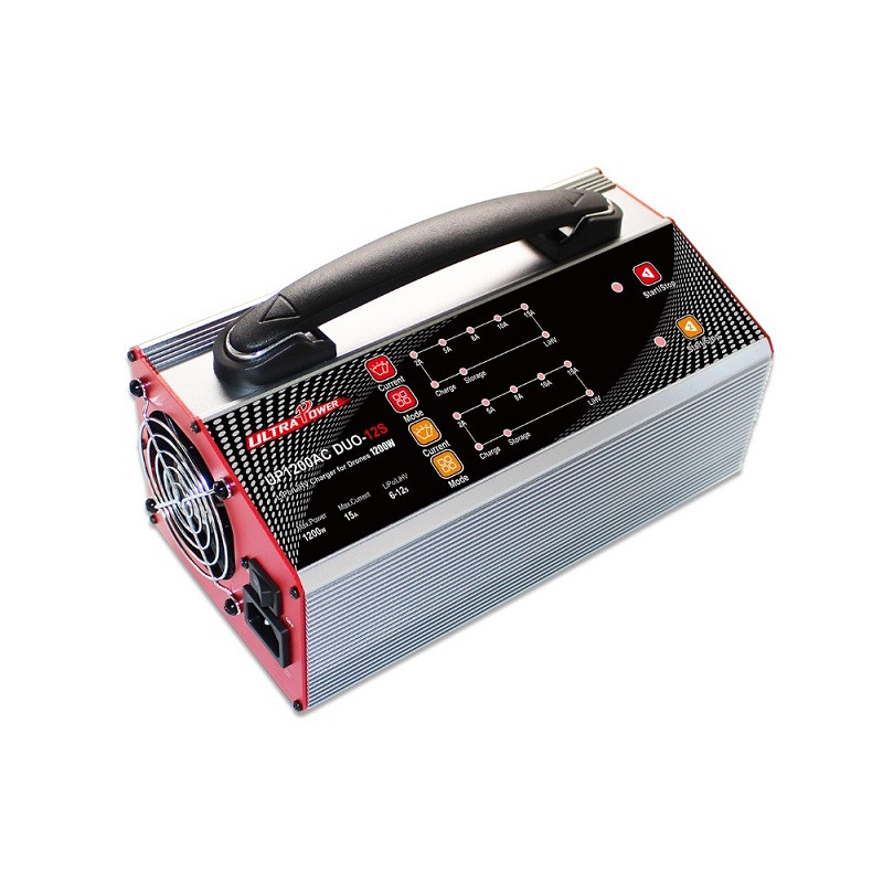 The Ultra Power UP1200AC DUO is an advanced UAV drone charger designed for efficient and simultaneous charging of LiPo batteries, catering to the power needs of unmanned aerial vehicles (UAVs). With a dual-channel configuration offering 2X600W power output, this charger is capable of handling 6 to 12-cell LiPo batteries, providing a versatile solution for various drone setups.