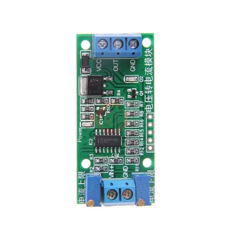 The voltage switch current module can convert a 0-2.5V voltage signal into a 4-20mA current signal.In the process of signal transmission circuit voltage signal will become weak with the transmission distance increased, the transmission can be avoided using a weak electric current signal.