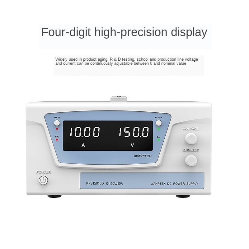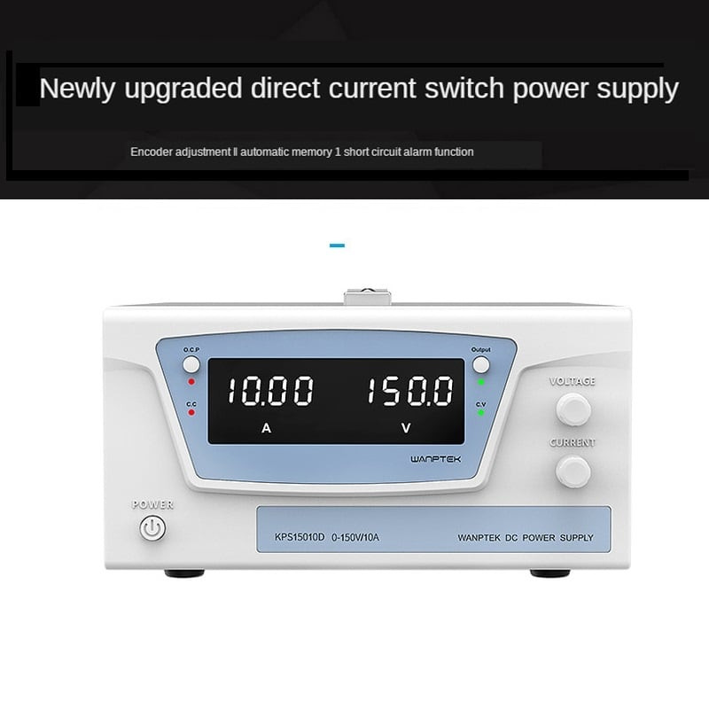 This is Wanptek KPS15010D 10A/150V 1.5KW LED Digital Lab Bench Power DC Regulated Switching Power Supply. The power supply has a large digital display, which can directly read the voltage. Its simple in assembly and disassembly, easy to carry, with a storage bag for compact storage.