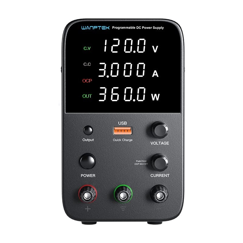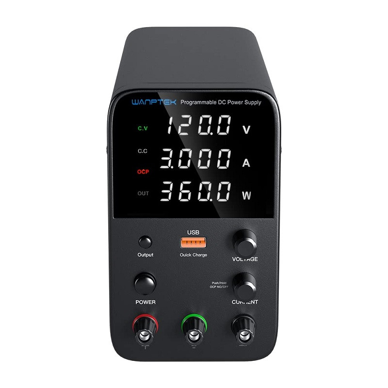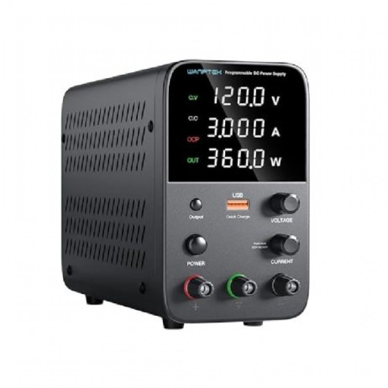 The Wanptek WPS1203H is an advanced Adjustable DC Power Supply, offering precision and flexibility for various applications. With a voltage output of 120V and current output of 3A, it delivers a robust 360W of power. Its adjustable features make it ideal for versatile electronic projects, laboratory work, and testing environments. The device provides reliable and stable power with precise control, ensuring optimal performance. The compact design enhances portability, while the digital display facilitates accurate monitoring. Whether in educational settings, research labs, or industrial applications, the Wanptek WPS1203H stands out for its efficiency, versatility, and user-friendly adjustable power output.