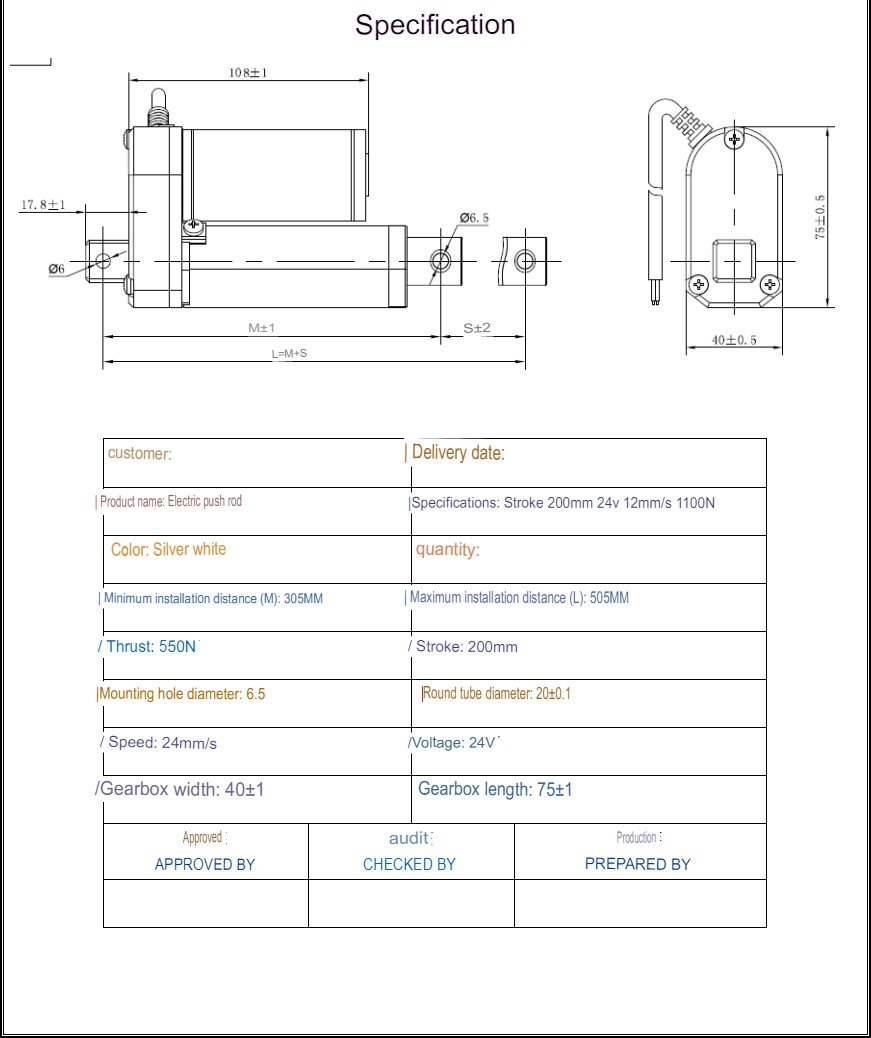 This is a Waterproof Stroke Length DC24V 200MM 12MM/S 1100N Putter Electric Linear Actuator.