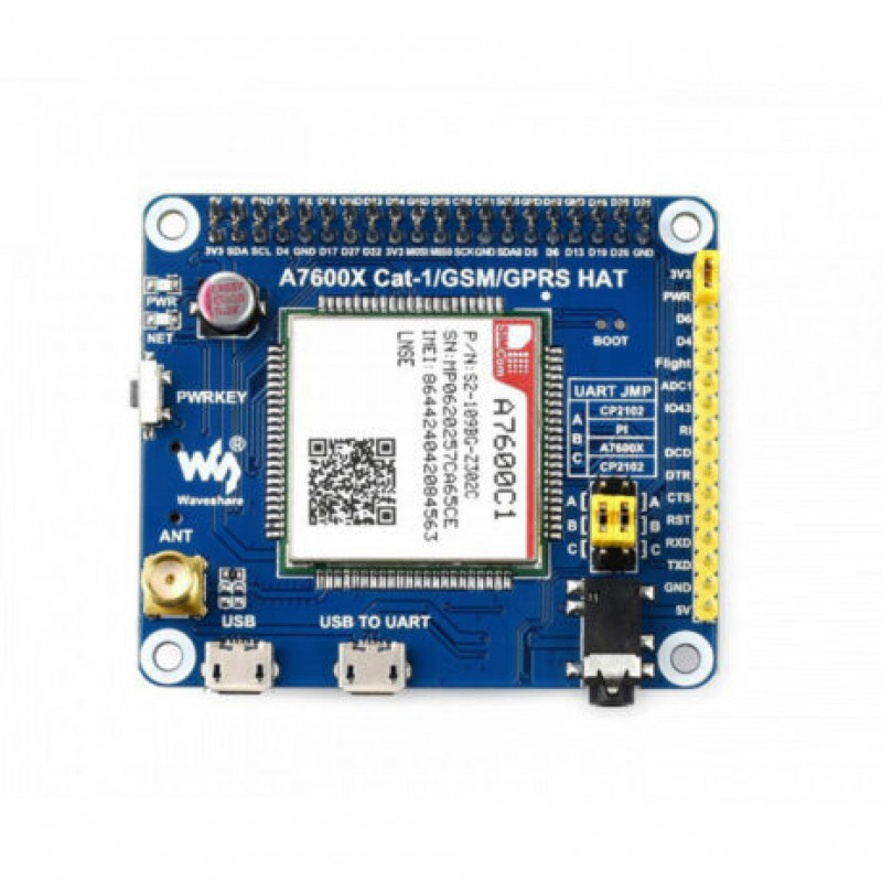 1 x Waheshare A7600C1 LTE Cat-1 HAT for Raspberry Pi, Low Speed 4G Module, 2G GSM / GPRS