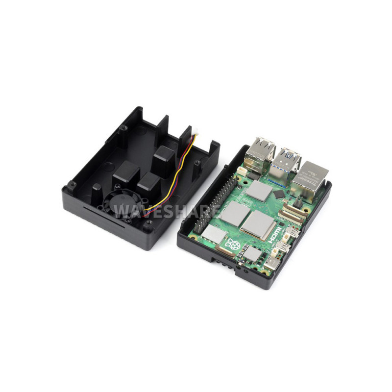 Waveshare Aluminum Stripe Grooved Case For Raspberry Pi 5, Built-In Cooling Fan And Heatsink Pillars