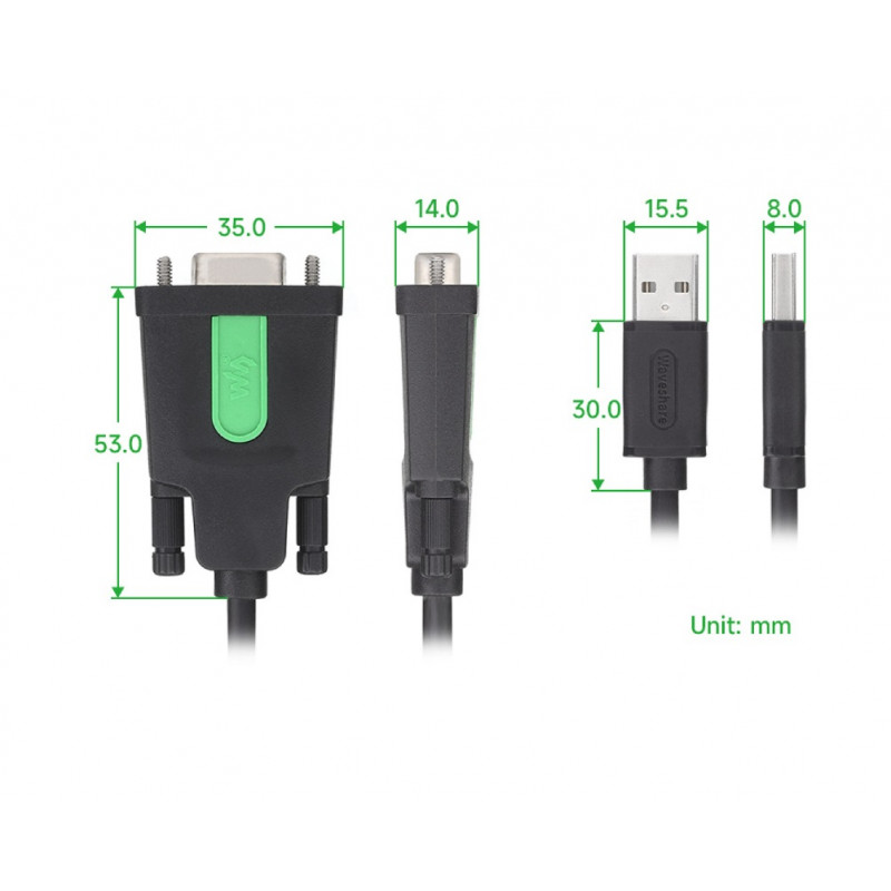 Waveshare Industrial USB To RS232 Serial Adapter Cable, USB Type A To DB9 Female Port, Original FT232RL Chip, Cable Length 1.5m