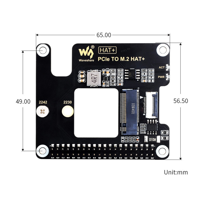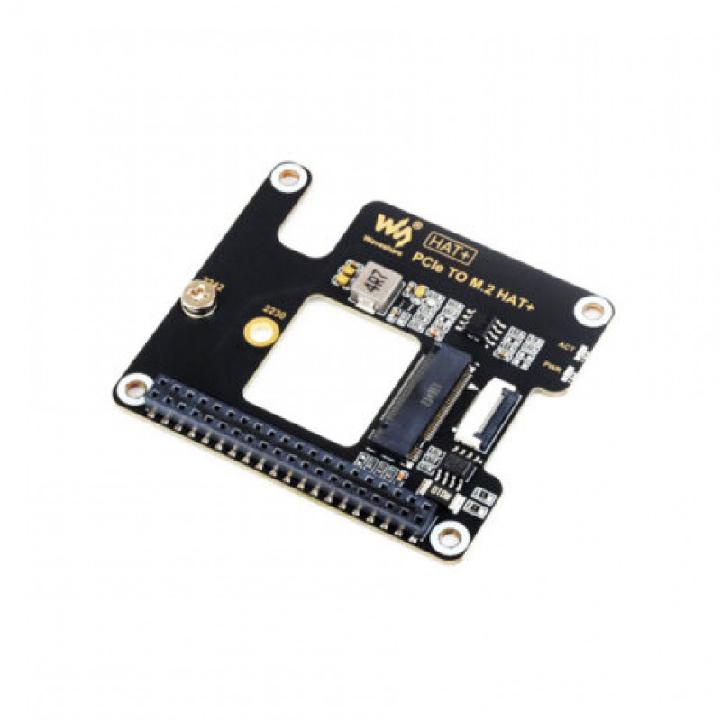 Waveshare PCIe To M.2 Adapter for Raspberry Pi 5, Supports NVMe Protocol M.2 Solid State Drive, High-speed Reading/Writing, HAT + Standard