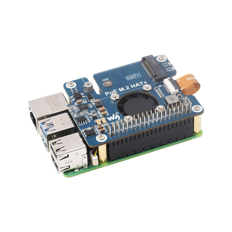 Waveshare PCIe To M.2 Adapter With PoE Function For Raspberry Pi 5, Supports NVMe Protocol M.2 Solid State Drive, High-speed Reading/Writing, Raspberry Pi 5 PoE HAT