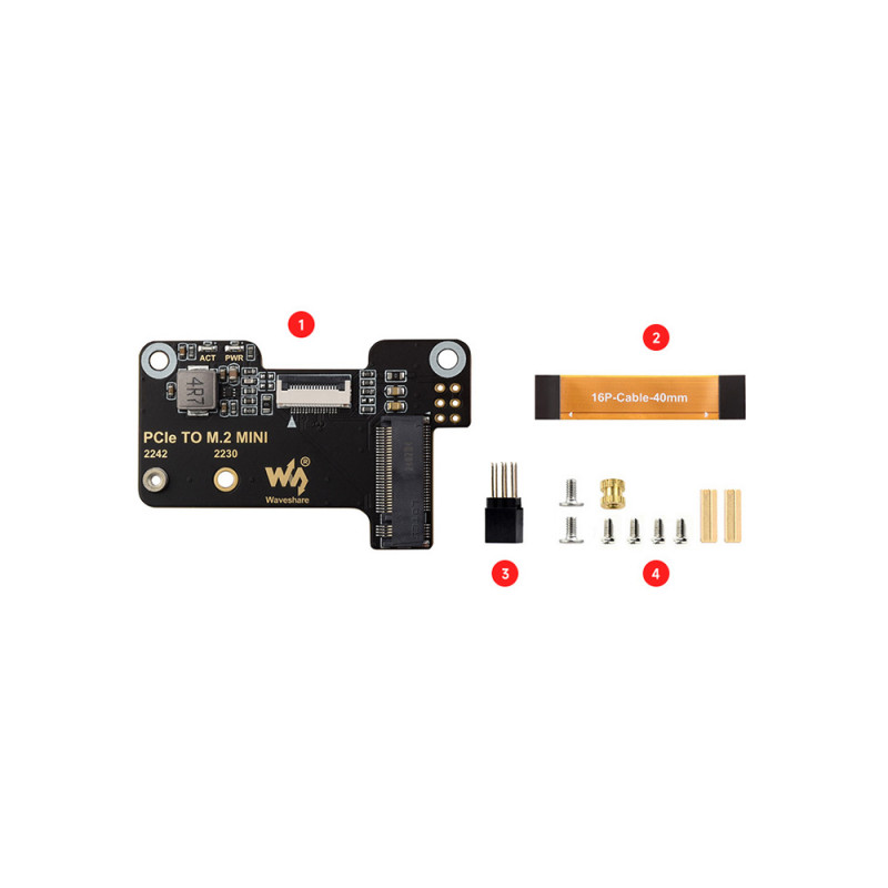 Waveshare PCIe To M.2 Mini Adapter for Raspberry Pi 5, Supports NVMe Protocol M.2 Solid State Drive, High-speed Reading/Writing, Raspberry Pi 5 NVMe HAT