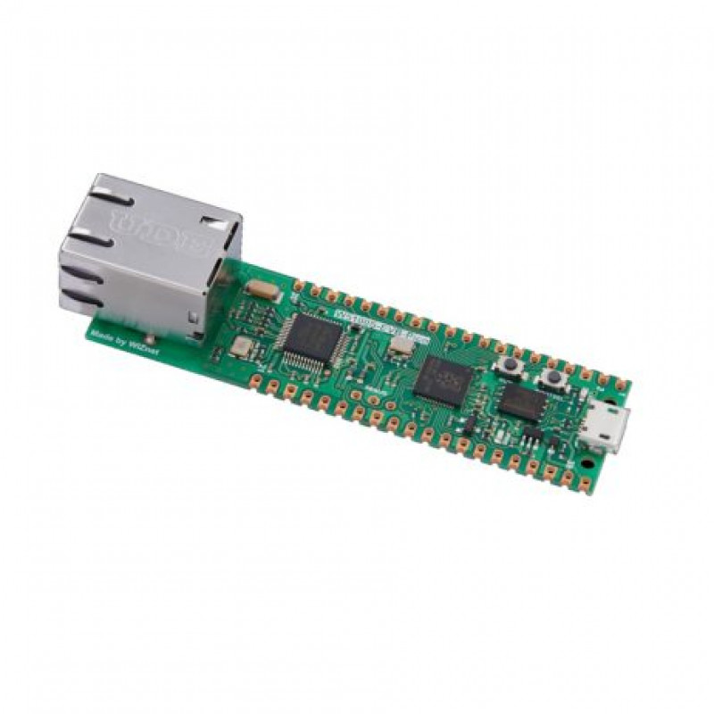 W5100S-EVB-Pico is a microcontroller evaluation board based on the Raspberry Pi RP2040 and entirely hardwired TCP/IP controller W5100S and basically works the same as Raspberry Pi Pico board but with additional Ethernet via W5100S.