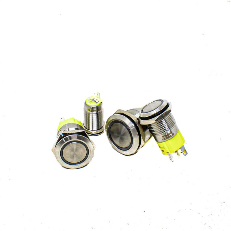 This Momentary Metal Pushbutton Switch is a perfect choice if you are in need of a heavy-duty push-button! These metal push buttons are a very tough, small, panel-mount switch with an illuminated Yellow LED ring. It is an SPDT with 16mm threading and 1mm pitch. It gives premium look to your dashboard or control panel with a Led Light ring around the push area of the switch. These switches are available in various LED light Colors, you can choose for your application purpose