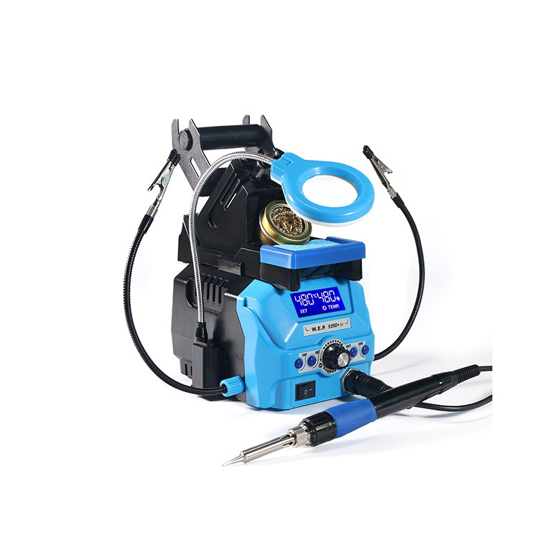 The Yihua 939D+-III is a soldering station that is known for its efficiency and versatility. It features a digital control panel with a large LCD display, which allows for easy temperature control and monitoring. The station has a high-quality heating element that heats up quickly and maintains a consistent temperature, ensuring that the soldering process is precise and accurate. The soldering iron included in the station is lightweight and ergonomically designed, making it comfortable to hold and easy to use.